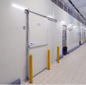 保溫部分采用聚氨酯噴涂,對于各種形狀的基材,不論是平面、立面還是頂面,不論是圓形、球形還是其他不規則形狀的復雜物體都可以直接實施噴涂發泡加工,大大的增加了客戶的冷庫使用面積,施工周期短;保溫效果好。庫門采用聚氨酯雙面彩鋼電動平移門。